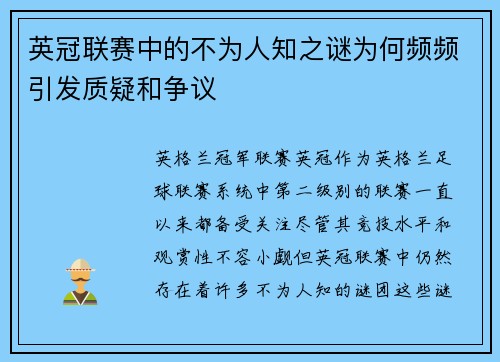 英格兰足球一直是世界足坛的重要一环,然而,尽管其具备强大的球员储备和悠久的足球历史,近年来频繁在重大国际赛事中失利。无论是在世界杯、欧洲杯等大赛中,英格兰队总是未能兑现其巨大的潜力,令球迷和媒体都颇感失望。本文将从四个方面深入分析英格兰足球频频失利的深层原因,并结合这些原因展望未来的发展。具体而言,...